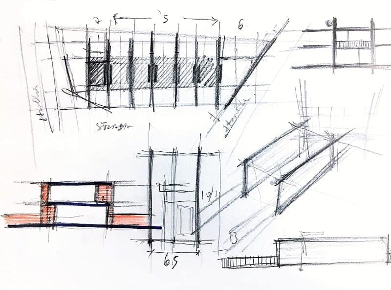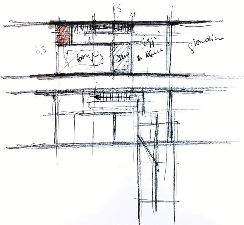 ****17 Idée design : Croquis mains libres de maison mitoyenne (B) avec salon double hauteur